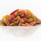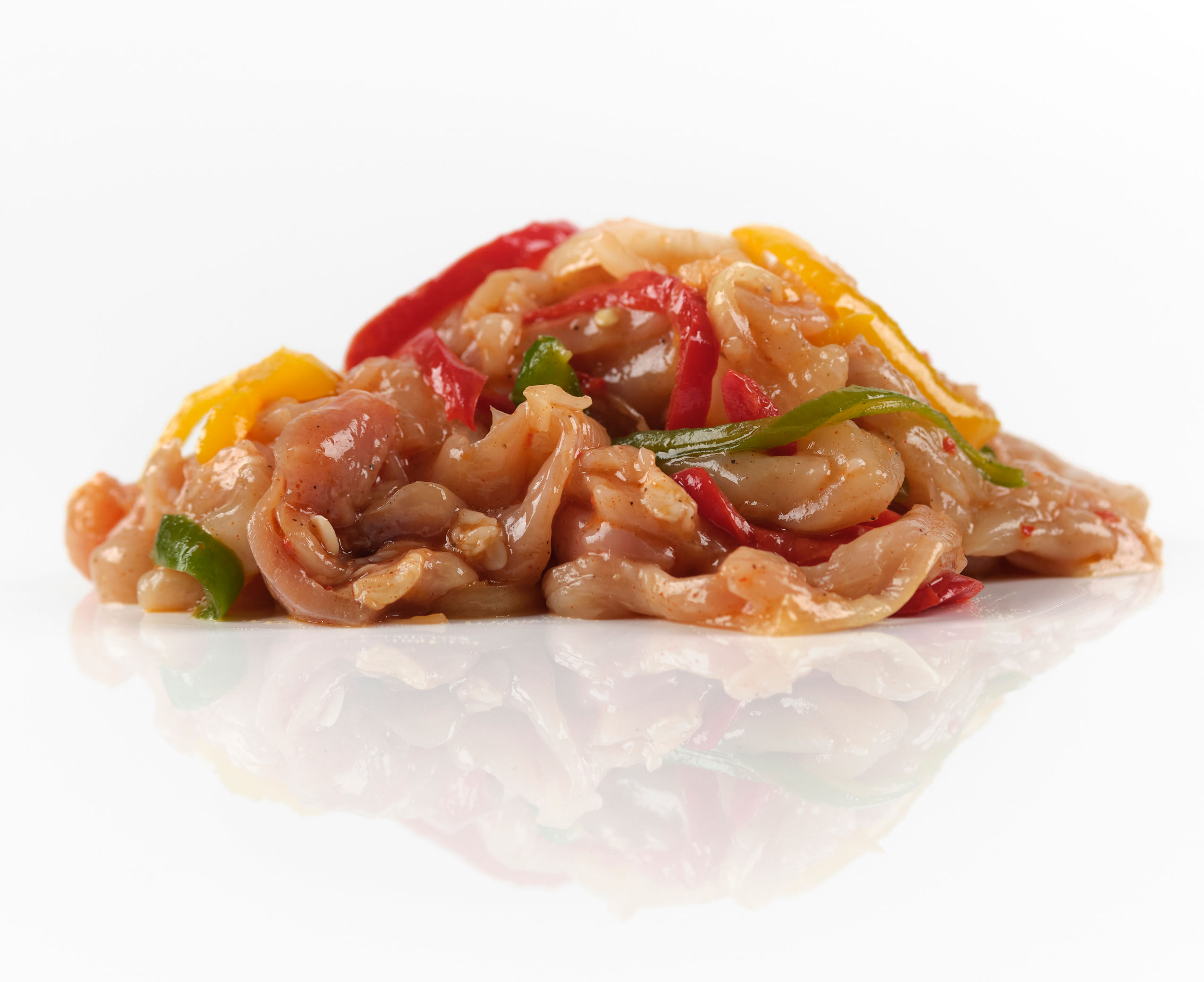 Pechuga de pollo, pimiento fresco, cebolla, aceite de girasol y nuestra receta gourmet.